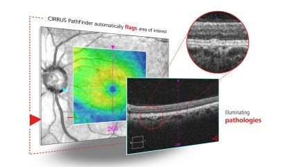 The CIRRUS PathFinder is available through licensing in the new software update, which also includes an expanded Reference Database, cybersecurity improvements, multi-layer segmentation and enhanced OCTA visualisation.