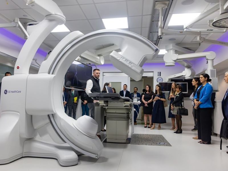 Allia Moveo combines features of a conventional operating theatre with advanced imaging equipment typically used in a catheterisation laboratory. This arrangement provides clearer images, supports navigation within the body and enables procedural adjustments to be made immediately when required.